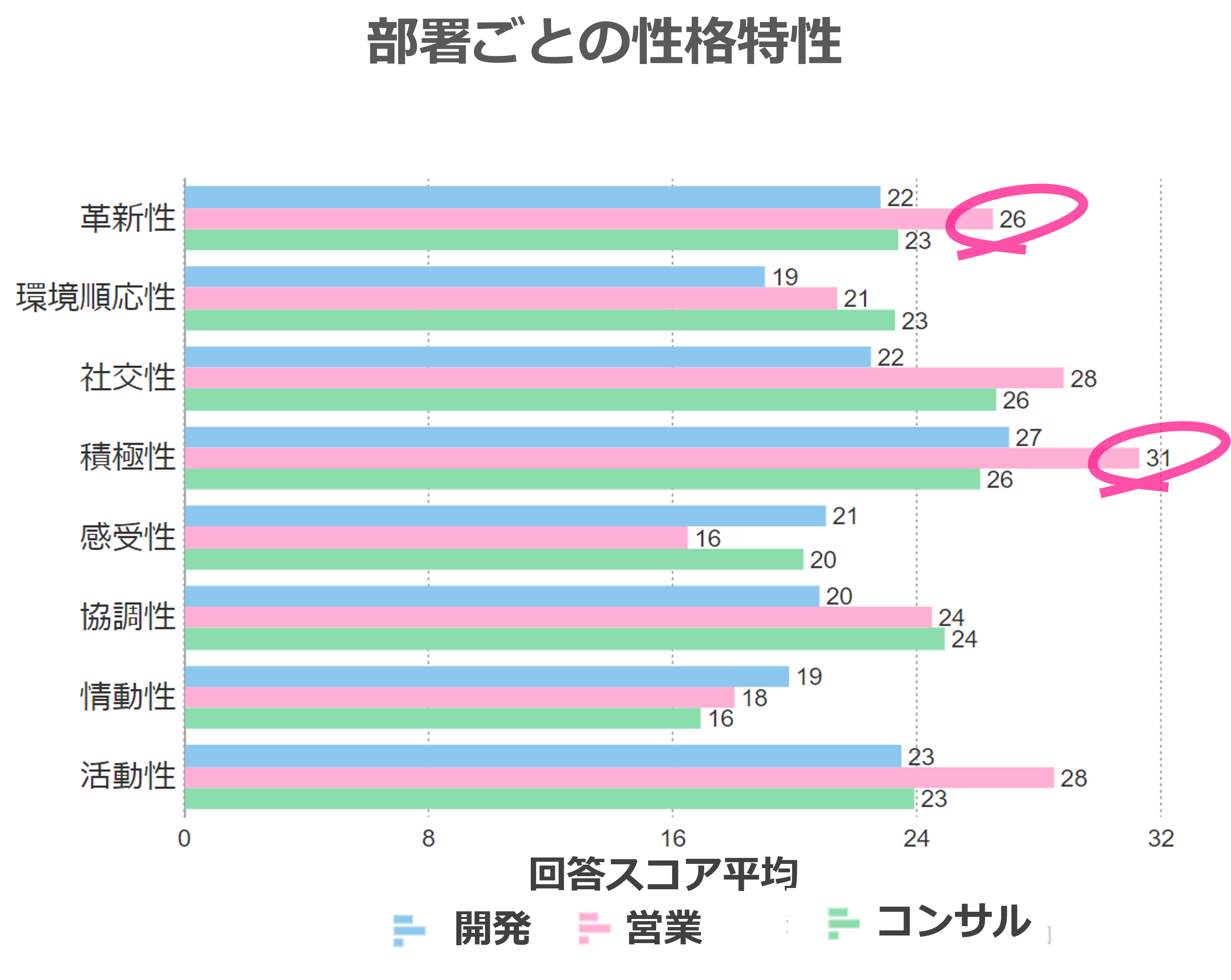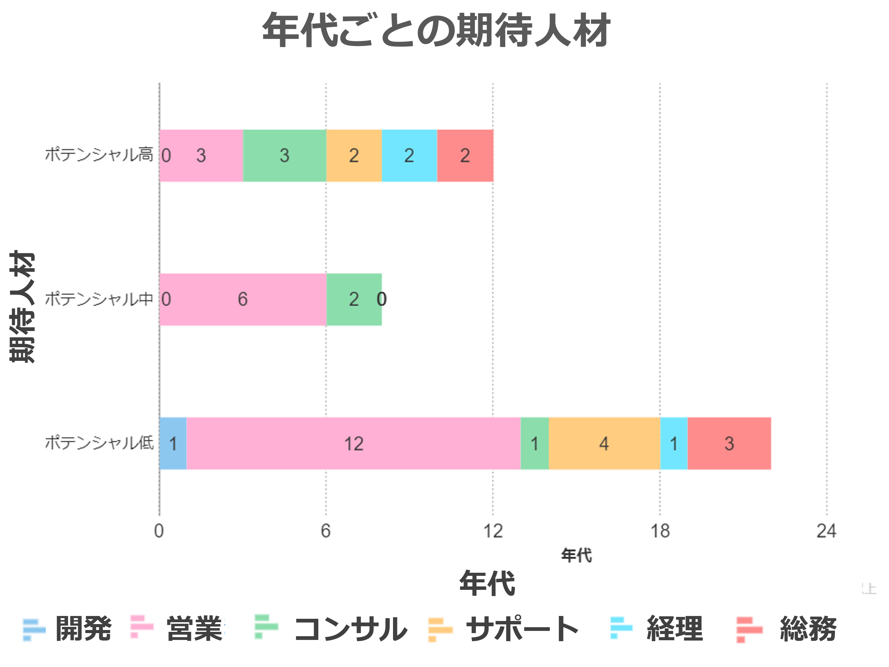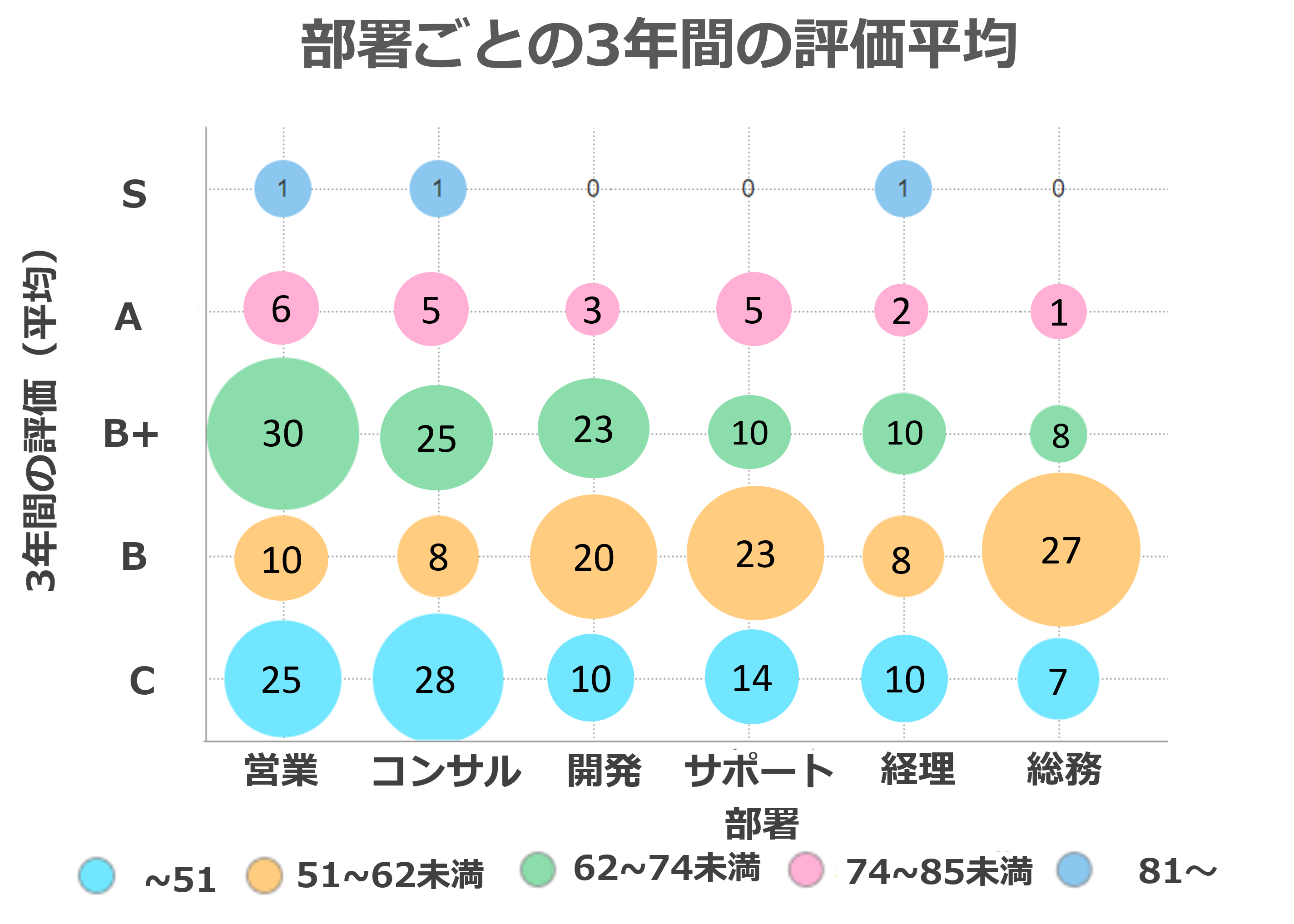 【マインド分析>子フォルダ比較(部署ごとの高評価者の比較)】