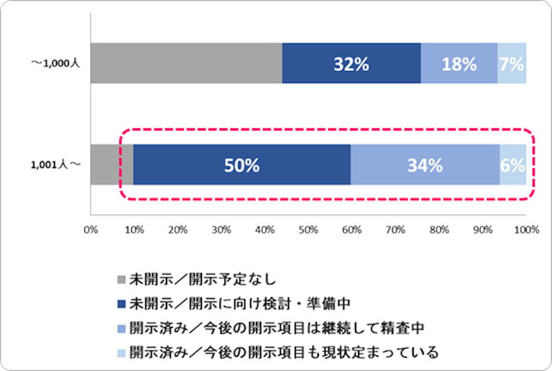 1,000名超の企業では9割以上の企業が開示に向けて準備を進めている、