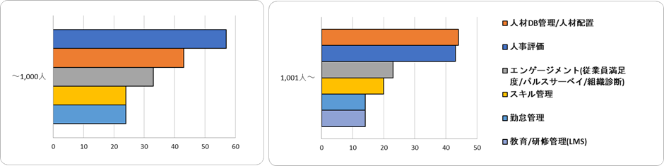 また従業員1,000名以上の企業では、教育/研修管理(LMS)が上位5位に入っており、大企業においては