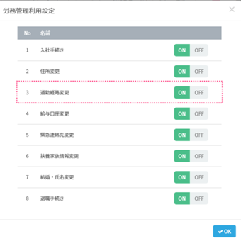 労務管理機能の承認フロー内にある通勤経路変更のフォームよりご利用いただけますので、ぜひご活用下さい!