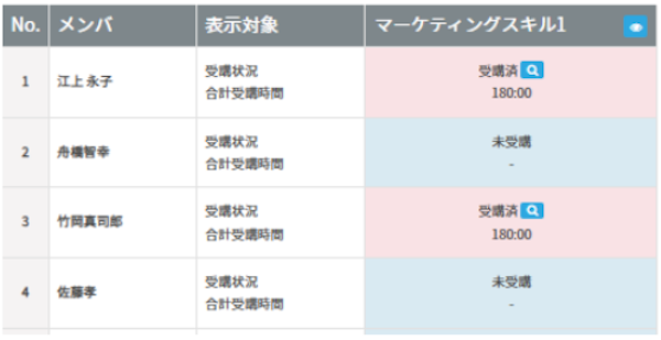 ▼研修管理機能 > 受講管理(Schooコンテンツ)