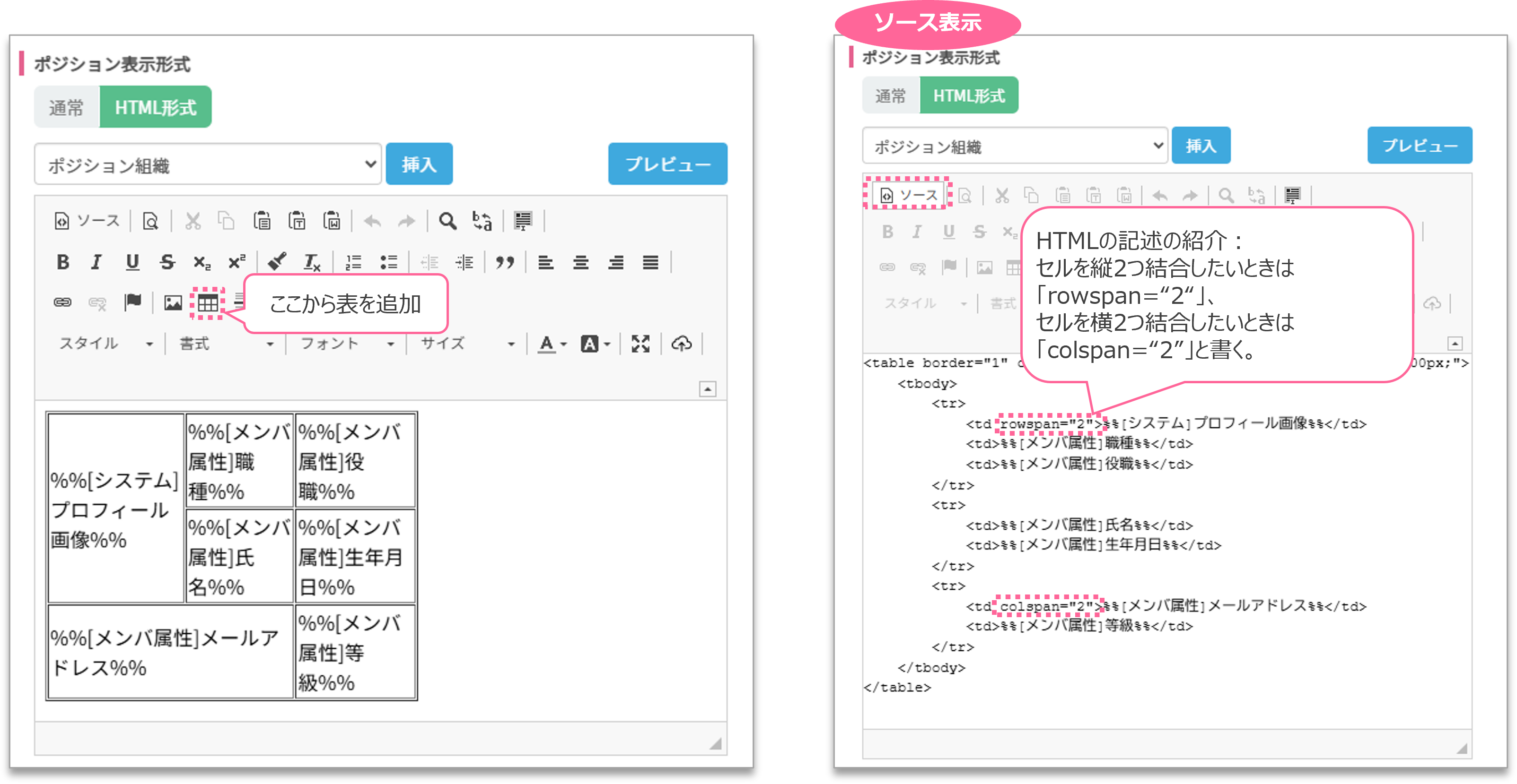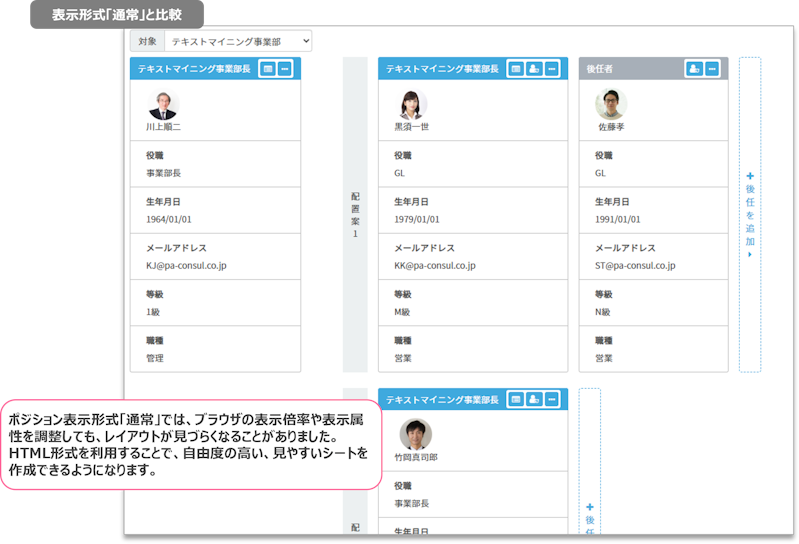 今回のアップデートでは、ポジション管理のレイアウト設定がHTML形式で作成できるようになりました!