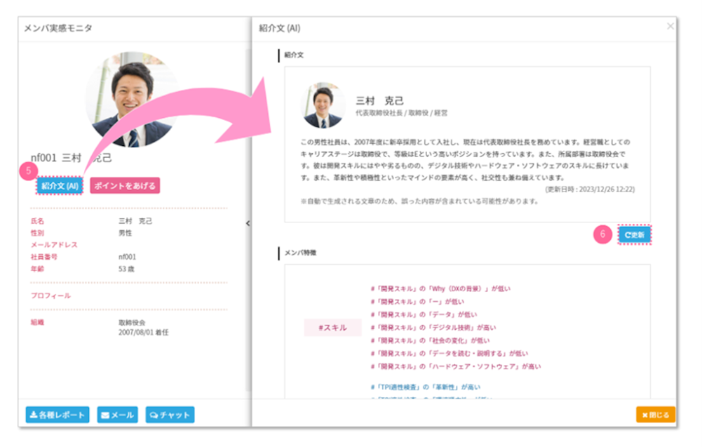 各メンバの「紹介文」を自動で生成し、表示することができますので、ぜひお試しください。
