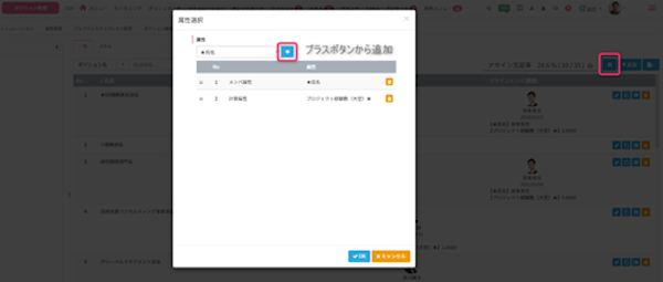 担当者をアサインできます。(メンバ属性・計算属性が表示できます。)