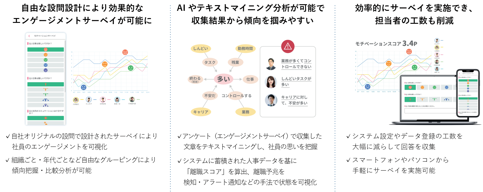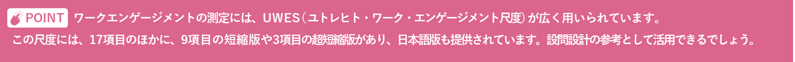 これら 3 つの要素を含む設問を設計することで、従業員のエンゲージメントを適切に評価することが期待できるでしょう。