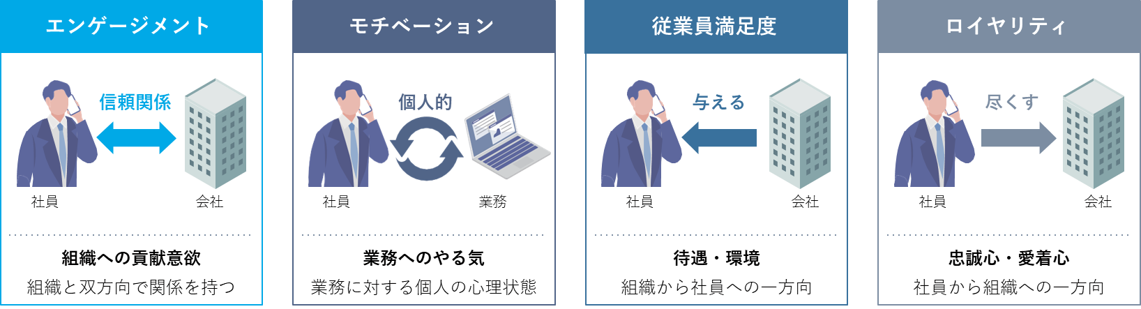 従業員が会社や仕事に対して愛着や誇りを持ち、自発的に貢献しようとする心理状態を指します。