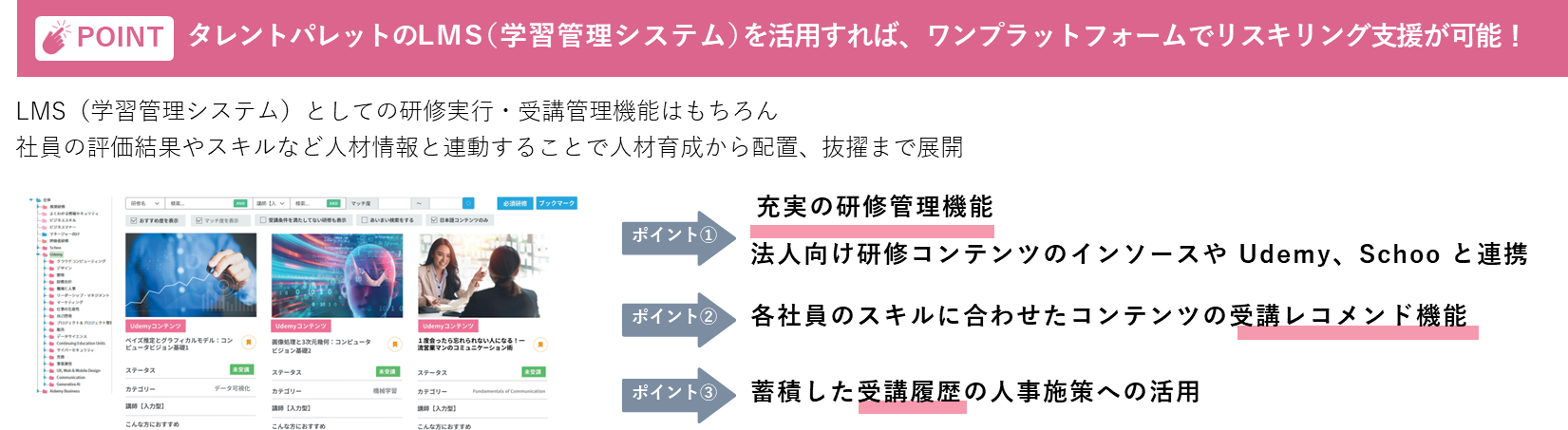 DX 推進や多様な働き方の実現に対応するために、社員が新たなスキルを習得することを支援する取り組みを指します。