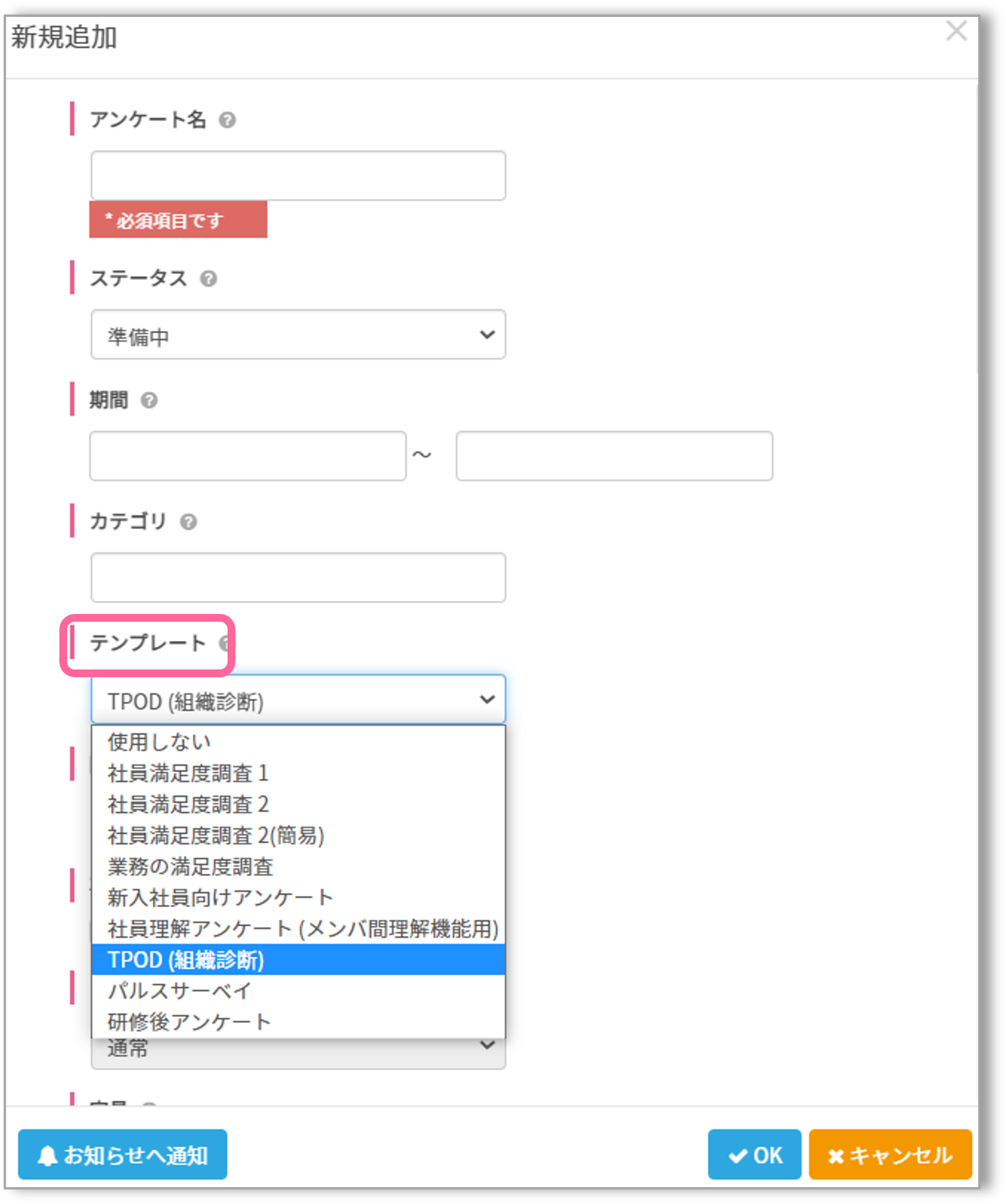 アンケートのテンプレートの中に「TPOD(組織診断)」というものがあります。
