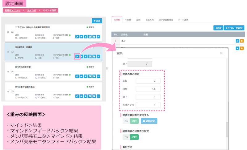 上司・同僚・部下それぞれの評価に重み付けができる新機能が追加されました!