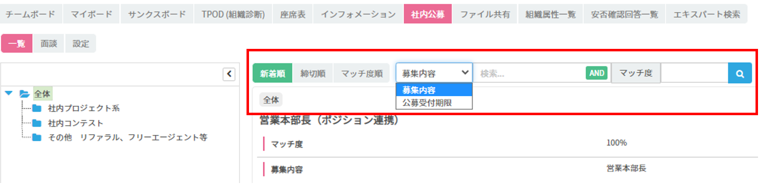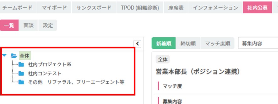 1,社内公募を分類するカテゴリの表示が「ドロップダウン形式」→「ツリー表示」に変更!