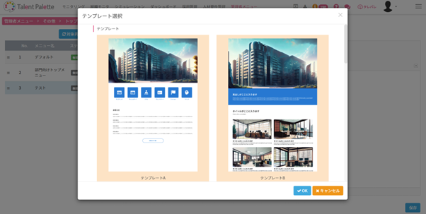▼【設定】タレントパレットログイン後にお知らせを表示したい(トップメニュー設定/TOPページ)
