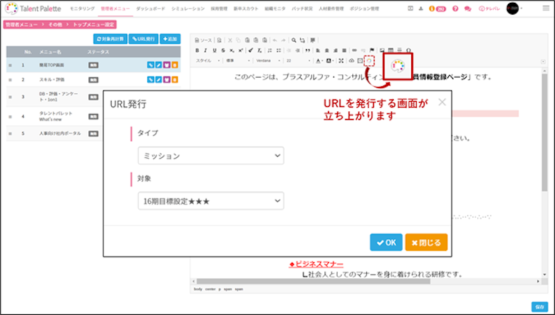 社内のさまざまなシステムへのリンクを貼ったり、タレントパレットの各機能へリンクさせることなどができるものです。