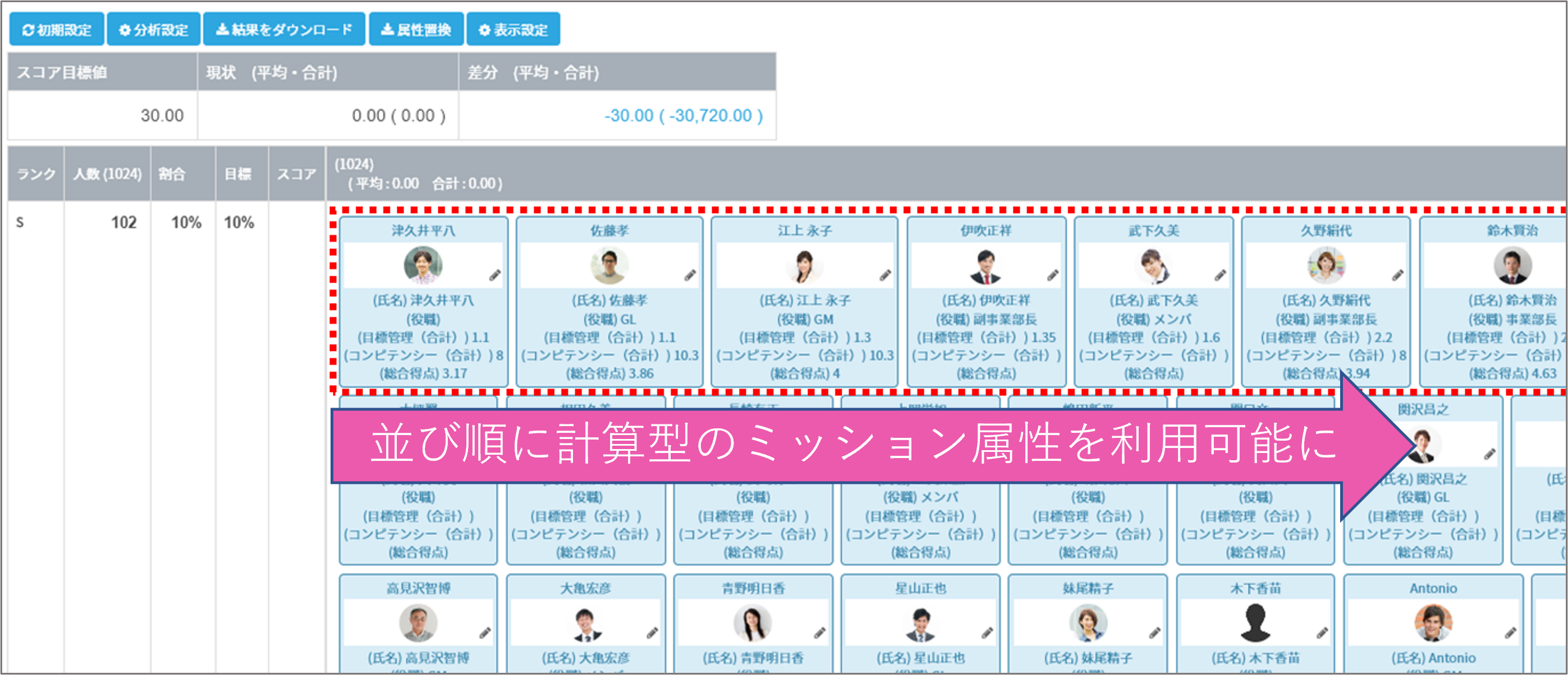 ※設定箇所=ミッション>評価調整>分析設定>並び替え