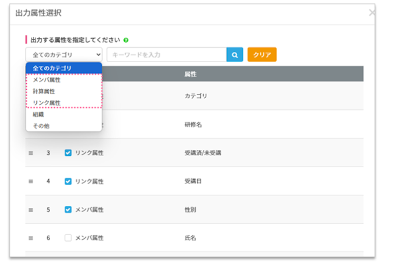 出力時には、メンバ属性・計算属性・リンク属性の属性を追加することができます。