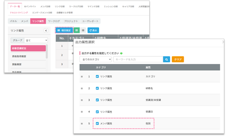(例:項目設定にて[メンバ属性:性別]を追加)