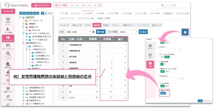 v12.9のアップデートにて、モニタリング>メンバ分析>集計表に「目標値マスタ」を登録できるようになりました!
