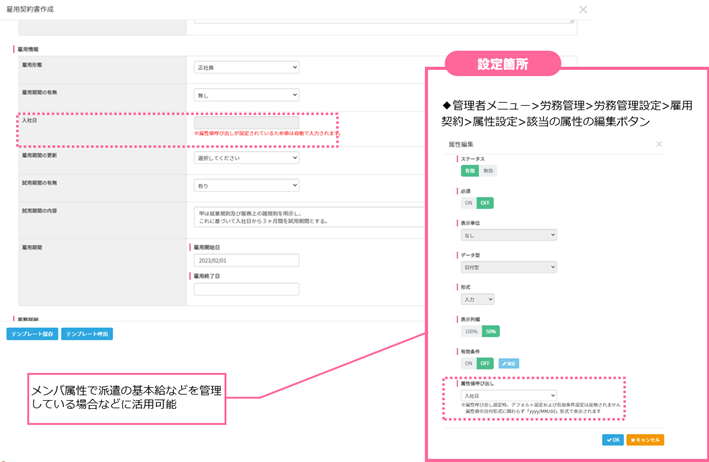 ②雇用契約書とメンバ属性の紐づけ(管理者アカウントでの操作)