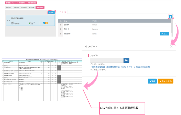 管理者メニュー>労務管理>労務管理設定>源泉徴収票
