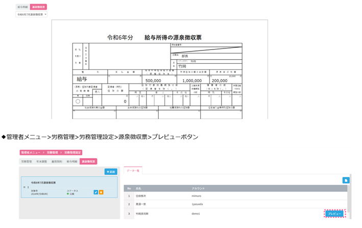 これまでのWEB給与明細機能に源泉徴収票出力機能が追加されました。