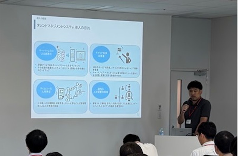 当日は人事室 人事企画推進部 ディビジョンマネージャーの田代様より、タレントパレット導入の背景や現在のお取り組み内容、今後の展望についてお話をいただきました。
