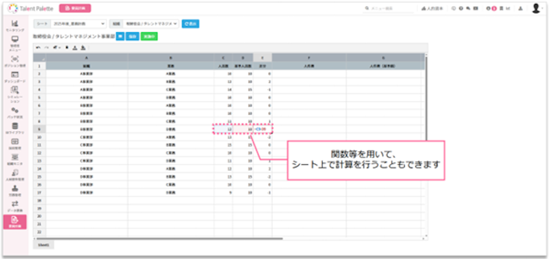 また、関数等を用いて、シート上で差分計算なども行えます。