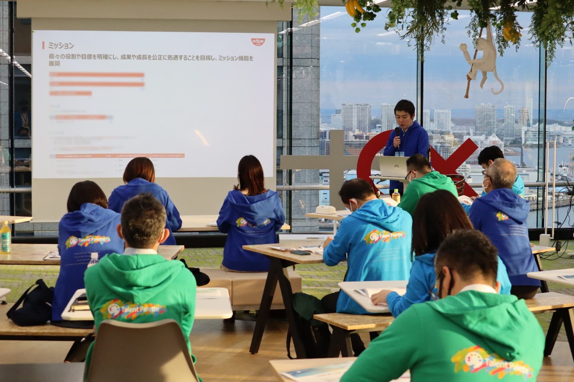 まず評価運用について、チーム目標管理から個人目標管理への制度移行に伴い「ミッション」の構築から活用を進めました。タレントパレットで運用するメリットとして、評価データをそのまま蓄積できる点や承認状況の把握の容易さがありました。