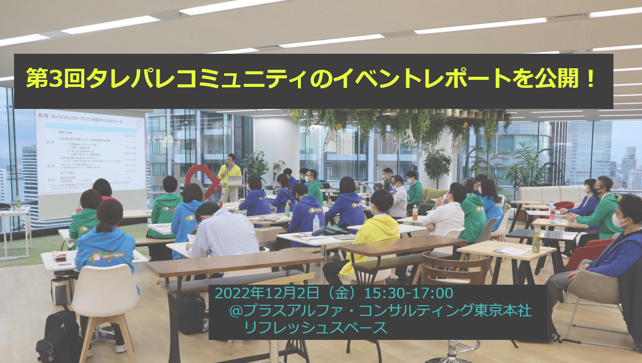 交流会では、参加者同士の活発な意見交換や交流が行われました。今回のタレパレコミュニティ用にご用意したパーカーを皆さまにご着用頂いたこともあって、終始和気あいあいとした雰囲気の中で閉会いたしました。